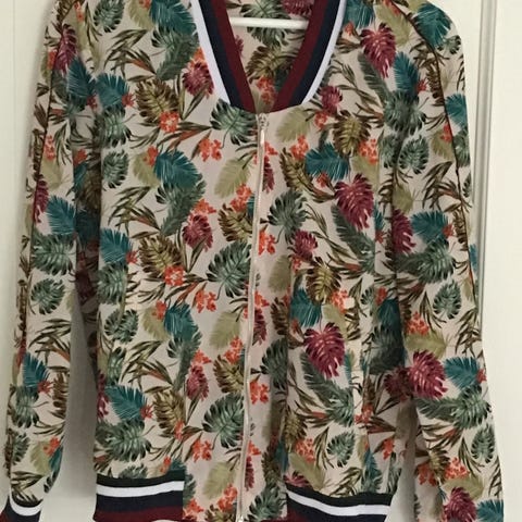 Stilig vår/ sommer/høstjakke fra Stradivarius selges da den ikke er i bruk. Tekstil i bomull, polyester og viskose.