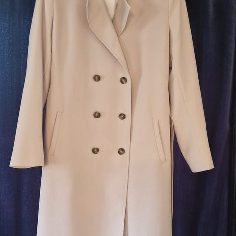 Selger en klassisk, tidløs kåpe i beige. Den har et belte i livet som gir en flatterende passform, og skulderdetaljer som gir et stilig preg. Mykt og behagelig stoff som holder deg varm på kjølige dager.