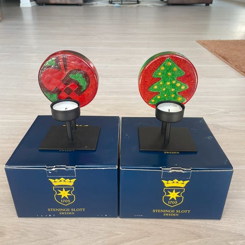 Vakker lysestake. Noen bruksmerker. Den er signert Steninge Slott på siden.