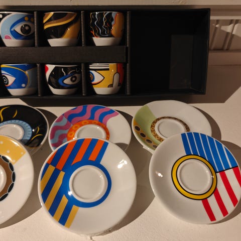 Syv pyntetallerkener fra Royal Copenhagen med ulike motiv. 8 cm i diameter og med oppheng. Kjøpt på loppemarked i Esbjerg for 30 år siden.