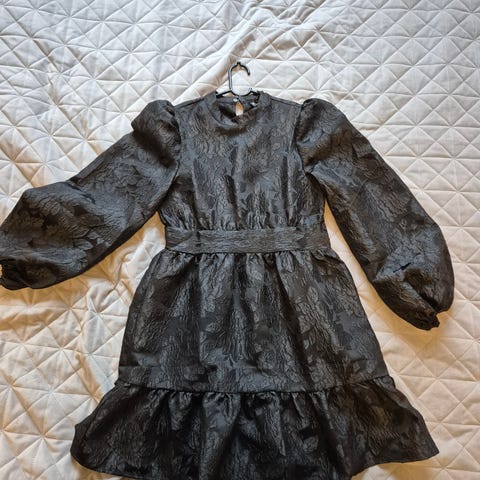 De første bildene er av kjolen jeg har, de siste tre bildene er hentet fra nett, samme kjole men i sort for å få mer tydelig frem fasongen. Liten i størrelse.