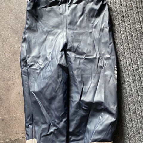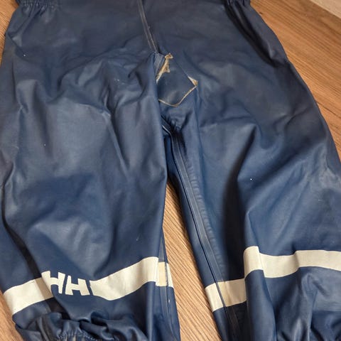 Godt brukt, der hull på knær og i baken er reparert med gorilla tape, så vil holde regnet ute.