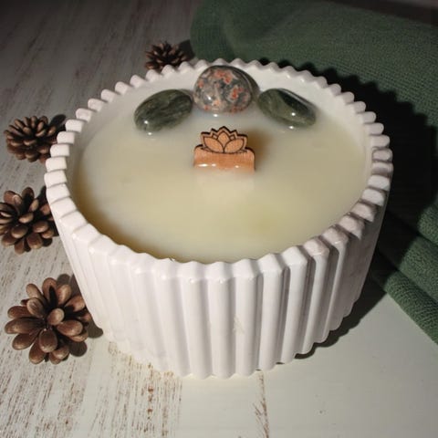 Witchy lys er en superfin lys som inneholder pentagram, amethyst måne, hvit sage og blomster.