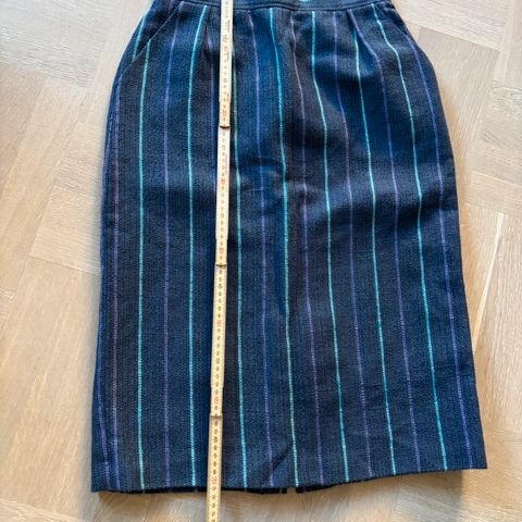 Selger et pent vintage skjørt i 100% viskose (naturmateriale) med perlemorsknapper. Skjørtet er i svært god stand. Det har glidelås i siden og festes i tillegg med en knapp. Skjørtet er fullt foret.