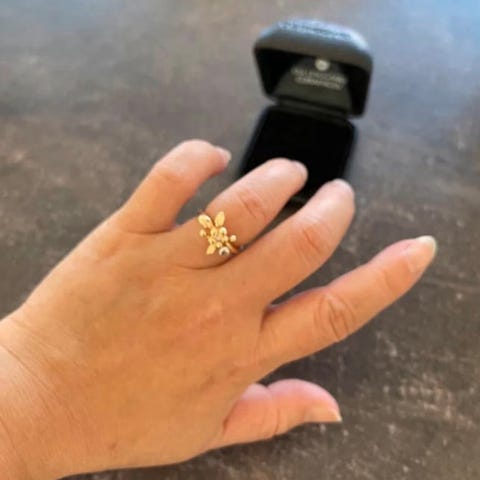 Har også samme love ring i hvitt gull som har diamanter. Nydelige sammen.