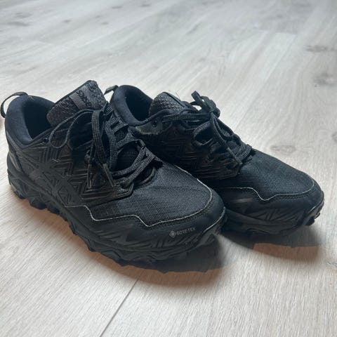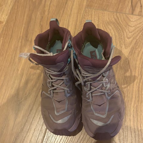 Pent brukte Hoka W Anacapa Low GTX hikingsko i str. 38 (US 7). Skoene passer bedre til noen som vanligvis bruker str. 37.