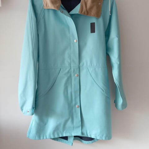 Didriksons regntøy for dame i størrelse 40. Jakken er blå og designet for utendørs bruk med vanntett materiale. Den har hette med justeringsmuligheter og flere lommer med klaff og trykknapp. Passer til bruk i vått vær. Snøring i livet for mer feminin look. Dessverre ble modellen feil for meg. Kun brukt en gang og fremstår som helt ny.