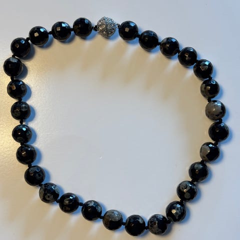 Obsidian sølvskinn armbånd