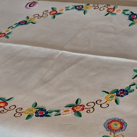 Vev i ull med ull brodering, beige