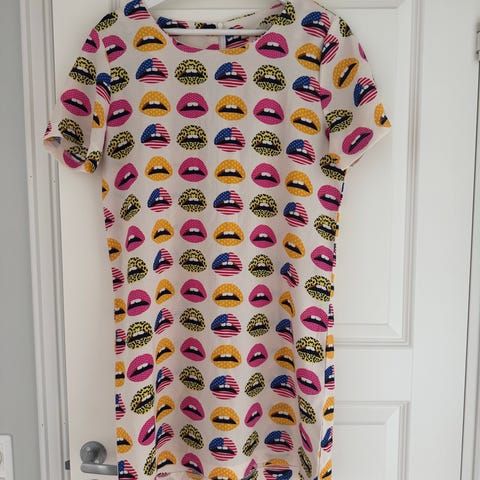 Kjole / t-skjorte fra Rika selges. I lys bomull med smilefjes, str 2 (M). Glidelås bak. Pent brukt.