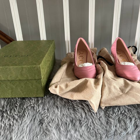Selger Gucci sko, str. 37, nærmest ubrukt. Klassisk fasong, men med en spennende vri i form gullhæl (på noen få centimeter). I meget god stand (noen få svake skrapemerker på hæler (mer detaljert bilde kan sendes på forespørsel).