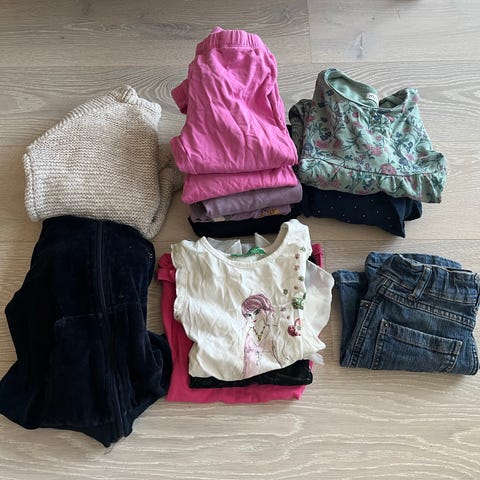 De fleste klær er brukt kun par ganger, bare på siste bilde de er noen flekker på grenser og liten flekk på kjøle.