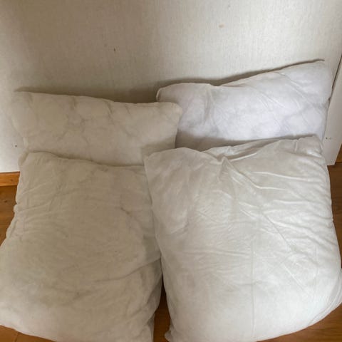 2 stk lite og pent brukt innerputer , fjadrar fra ikea og 2 stk litt mindre fra princess selges for 150kr samlet. Alle er fullt med fjær. De er stått på gjesterommet, så si ubrukt, ingen flekk/hull . Kan selges separat, 50kr pr stk. Kan sendes mot forhåndsbetaling +porto 129kr. Sender kun med postnord ikke fiksferdig.🙂