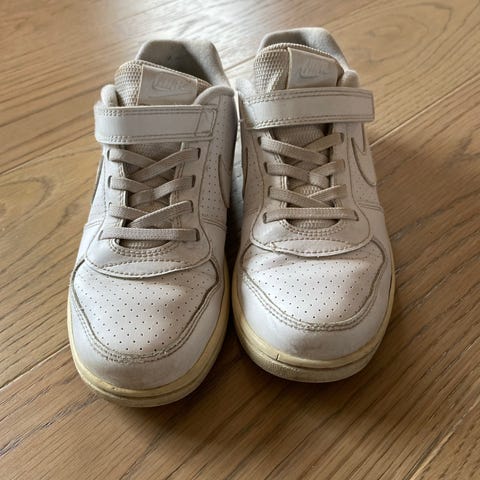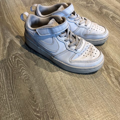 Godt brukte Nike sneakers, men jeg vil si at det fortsatt er bruk igjen. Ikke veldig slitt under sålen, ikke tråkket skjeve. Oppleves som romslige i størrelsen.