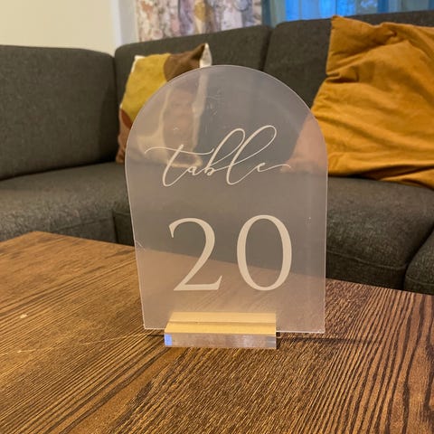 Bordnummer 1 - 20 brukt én gang i bryllup.