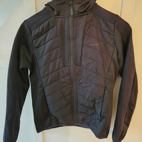 Selger lite og pent brukt Didrikson hybridjakke i str. 160 til kr 499,- Jakken er kun brukt noen få ganger og fremstår hel og fin. Farge grå og svart. Har høy hals og fast hette. Har tommelhull i ermslutten.