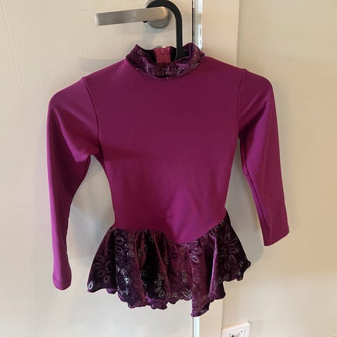 Varm fleece foret kunstløp kjole fra Jerrys i str 8-10år. Følger med matchende hårstrikk - kan brukes både til trening og konkurranse