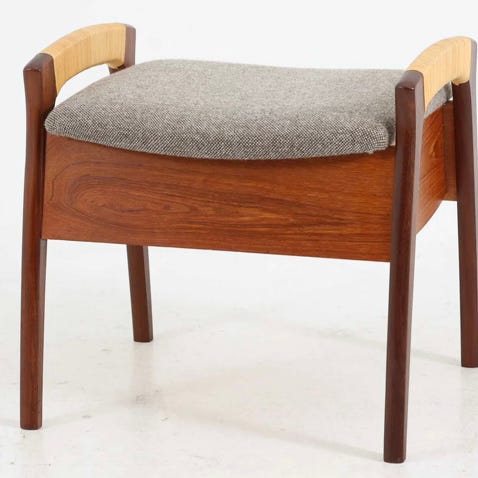 Fin fotskammel med tidsriktig trekk. Et av bena er litt løst, kan nok enkelt skrus inn/limes.