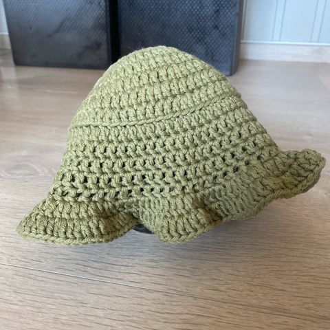 Selger selvlaget, heklet, bøttehatt/festhatt. Passer voksen.