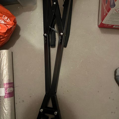 Sykkelstativ for bil med justerbar ramme og låsemekanisme for sikring av sykkel under transport. Laget av metall og plastmaterialer for holdbarhet. Passer for de fleste sykler og biler med kompatible tak- eller bagasjebærere. Enkel å montere og demontere. Følger med 2 nøkler.