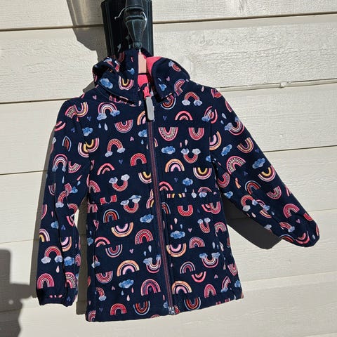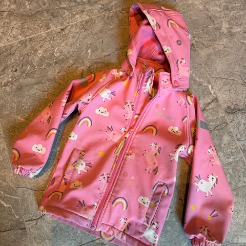 softshell Jakke fra Lindex med enhjørninger og regnbuer. Ingen anmerkninger