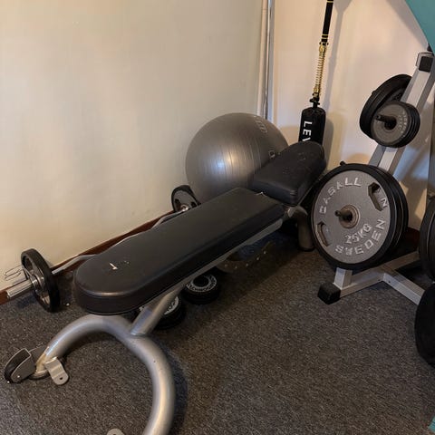 treningsstativ med vektstang. Passer til styrketrening i hjemmet. Stativet har plass til å feste vektsskiver.