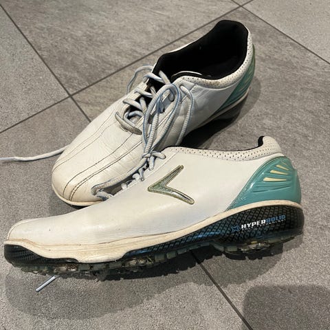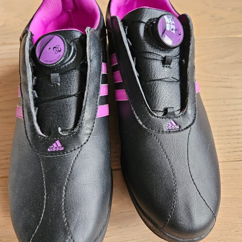 Adidas Ecco Golf Sko i størrelse 39 for damer, beige farge. De er brukt 2 ganger. Skoene har en solid såle med pigger for godt grep på golfbanen. Materialet er av høy kvalitet med pustende mesh for komfort under bruk.