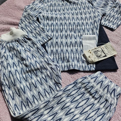 Lilleba pysj/heldress i bambus. Str 92, farge hvit og blå. Veldig myk og god. Pent og lite brukt.