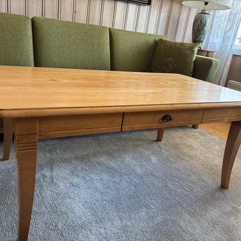Et nydelig sjeldent og unikt salongbord i god stand med to klaffer selges. Sannsynligvis fra 40-tallet.