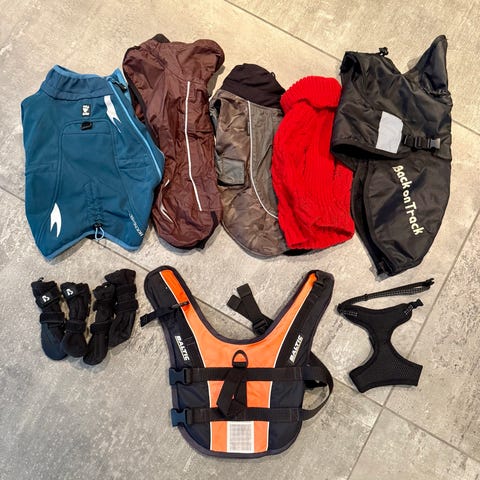 Selger diverse hundeutstyr. Passer medium størrelse.