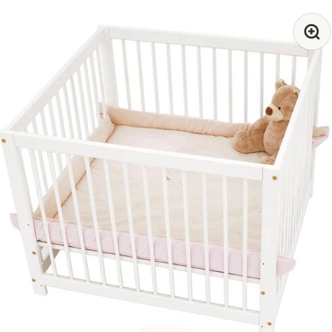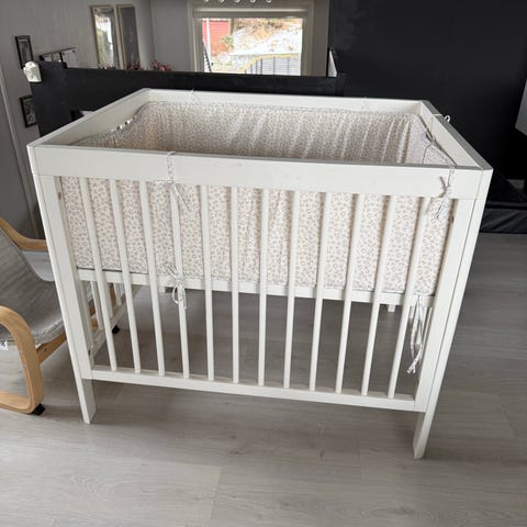 Pent brukt lekegrind med nydelig rosa leketeppe og hjemmelaget skummadrass fra Basson Baby