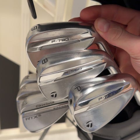 Merk: liten skade på pitching wedgen, nede ved køllhodet.