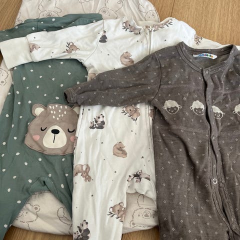 Strl 68, med to plagg i 74/80, men alt er brukt samtidig.
