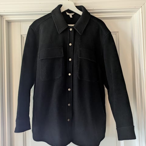 Str 40. Lukkes med knapper. Strikk og knyting i midjen.