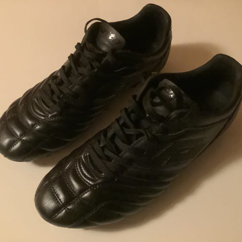 Nike Phantom fotballsko i størrelse 40 med oransje og sorte farger. Skoene har snøring og en høy ankelkrage for støtte. Yttersålen har knotter for godt grep. Materialet er lett og designet for fotballspill.