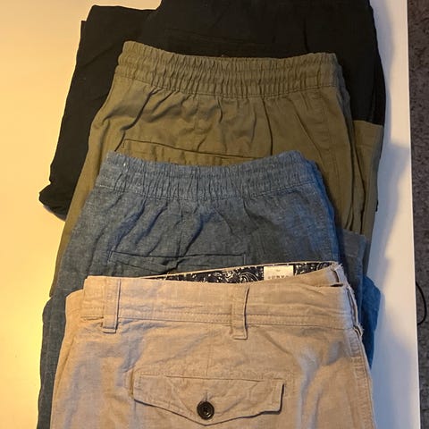 Klespakke med shorts til herre i str M. To jogge shortser og en lin shorts. Selges samlet til 100kr. Pent og lite brukt. Gjerne spør om fler bilder💗