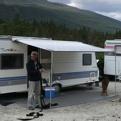 Markisevegger til Caravanstore markise 280. Front og begge sideveggene. Springstenger følger med. Aldri vært brukt.