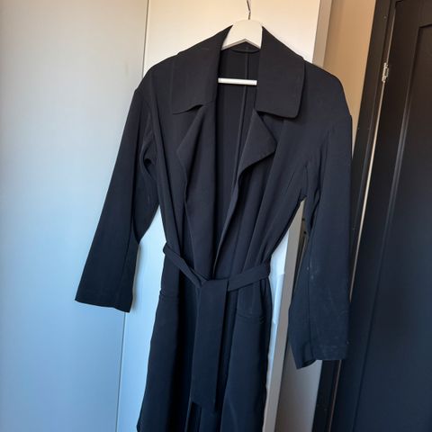 Marineblå, merket str XS. To stikklommer og belte. Fra Bik Bok.