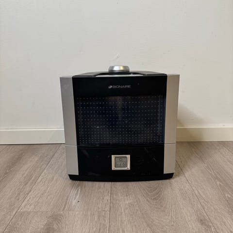 Ultrasonisk luftfukter, enkelt å fylle vann fra toppen, 30 m2, 5,5 liter tank, 280 ml / time, under 38 dB lyd. Flott design.