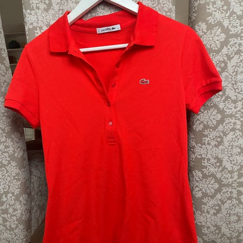 Lacoste Poloskjorte i nydelig rød farge, størrelse XS. Brukt kun et par ganger, er som ny!