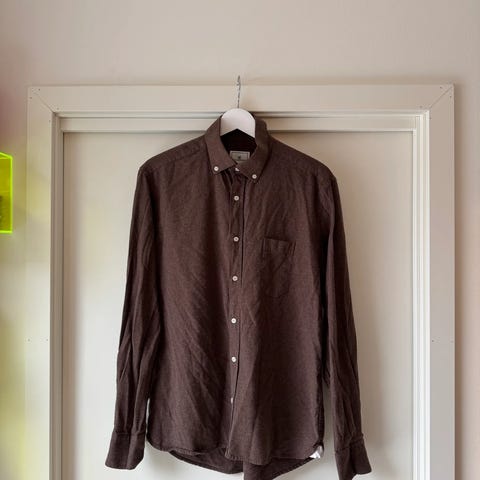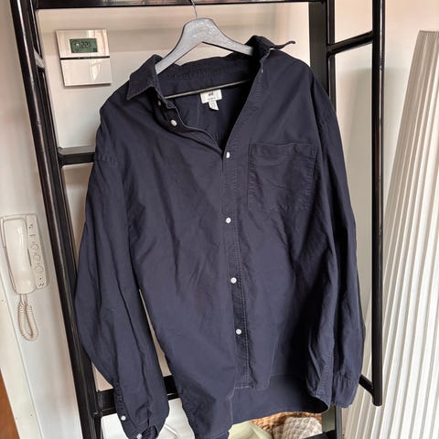 H&M skjorte i størrelse XL for herre, fargen grønn. Skjorten har lange ermer, knappelukking foran og krage.