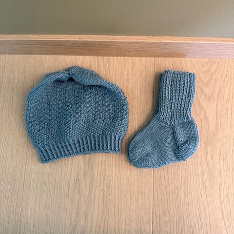 Hjemmestrikket lue og votter