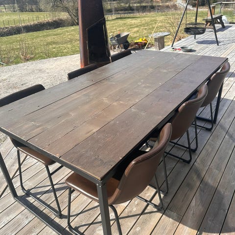 Et bord 200x100cm, et mindre bord 80x80cm og 8 stk regulerbare stoler.