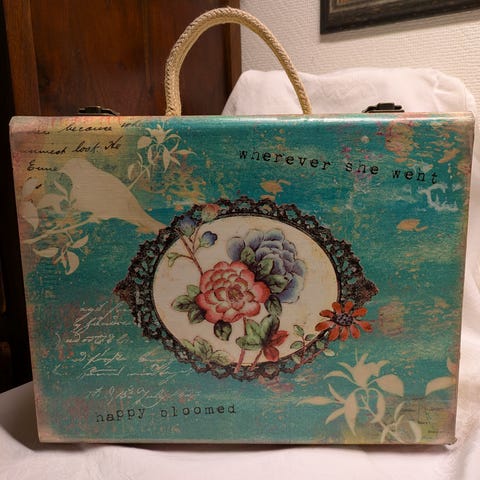 Nydelig gammel metall boks fra 60 årene. 4,5 cm høy og 23 x 14 cm.