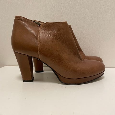 Selger ankel støvletter /skoletter i beige semsket skinn (bevis på det er at det står «Vero Couio» under dem som betyr at de er laget av ekte skinn i Italia. Merket på skolettene er «a Pair»!