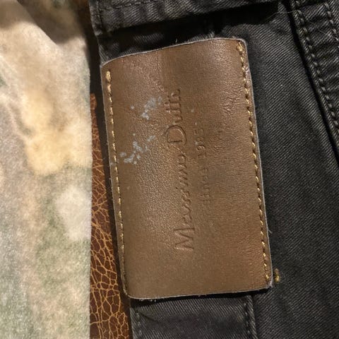 Massimo Dutti Slim Fit Chinos i brun i størrelse 44 for menn. Laget av bomullsmateriale, designet med slim fit passform. Buksen har lommer foran og bak, beltehemper og knappelukking.