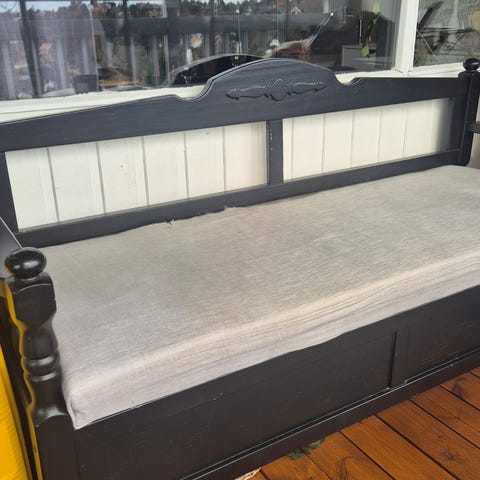 Heltre benk med oppbevaring. Puter kjøpt på jysk kan medfølge.