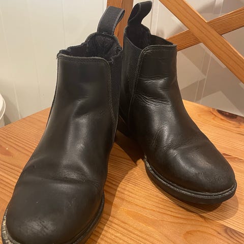 Brun Chelsea-stil sko laget av skinn,. Skoene har elastiske sider for enkel på- og avtagning, samt en lav hæl. Passer til hverdagsbruk.