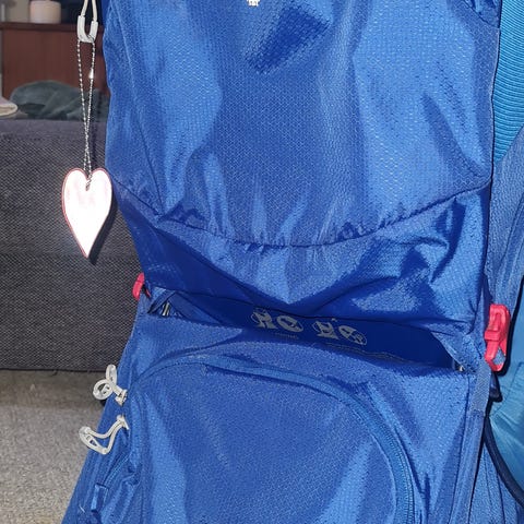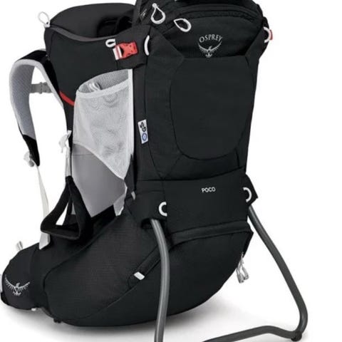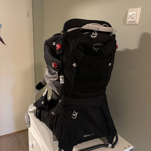 Pent brukt Osprey Poco AG, farge: seaside blue. Brukt i to sesonger, derfor små merker / flekker må beregnes. Hovedsakelig er det flekker / mørkere punkter nederst. Regntrekk medfølger.