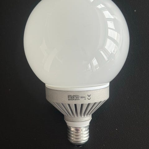 Pent lys til LED å være, og meget strømgjerrig, men byttet tilbake til glødepære, da jeg likte det bedre. Lysstyrken svarer til 40 W glødepære. Bruker standard-sokkel E27, som de fleste i Norge har.